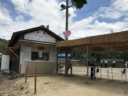 Tsushimanomiya Station (津島ノ宮駅, Tsushimanomiya-eki) is a passenger railway station located in the city of Mitoyo, Kagawa Prefecture, Japan, operated by Shikoku Railway Company (JR Shikoku). Tsushimanomiya Station is a seasonal station, which opens on August 4 and 5 only, coinciding with the nearby Tsushima Shrine (Kagawa) Great Summer Festival. Among seasonal stations this station has the shortest number of operating days per year in Japan.