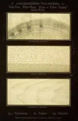 The cheap, soft and pale wood from the tuliptree Liriodendron tulipifera is known as American tulipwood or poplar and American whitewood, canary whitewood and canary wood, it is widely used.