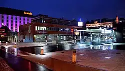Tulli's area houses the premises of the University of Tampere, small industry, the Tullintori shopping center and, to an increasing extent, also settlements. The Customs House and Pakkahuone have restaurant and cultural activities. The northern boundary of Tulli is the Itsenäisyydenkatu street and in the north-south direction it is split by the Yliopistonkatu street. On the eastern edge of the district is the popular recreation area of the eastern center, the Sorsapuisto park, on the southern edge of which is the large concert and congress center, Tampere Hall, completed in 1990. In the western part of Tulli, on the edge of the railway yard and Ratapihankatu, is the tallest hotel building in both Tampere and Finland, Hotel Torni.[2] A new high-rise building, the Tulli Tower (Tullin torni), is planned about 150 meters south of Hotel Torni.[3]