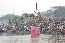 Tulsi Ghat is associated with a number of rituals such as Lolark Sasthi at Lolark kunda (performed for the birth and welfare of sons) and a sacred bath to rid oneself of leprosy and skin diseases. The festival of Lolark Sasthi falls on the 6th day of the bright half of Bhadrapad.[2] During the Hindu lunar month of Kartika (Oct/Nov), the Krishna Lila, a play about the lila of Krishna (Nag Nathaiya), is staged here.