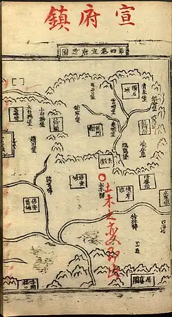 The army departed from Beijing on 4 August[24] and headed towards the Juyong Pass.[25] The objective was to make a swift and brief march westward, passing through Xuanfu and reaching Datong. The plan was to conduct a rapid campaign in the steppe and then return to Beijing via the southern route. This route was chosen to avoid excessive destruction in the region along the Beijing–Xuanfu–Datong road, as the army would be passing through it twice. The return journey would take them through Yuzhou and the Zijing Pass.[23]