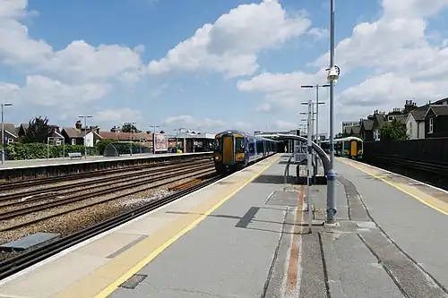 ![]() Southeastern and Southern services at Tonbridge, looking east in 2021 | |||||