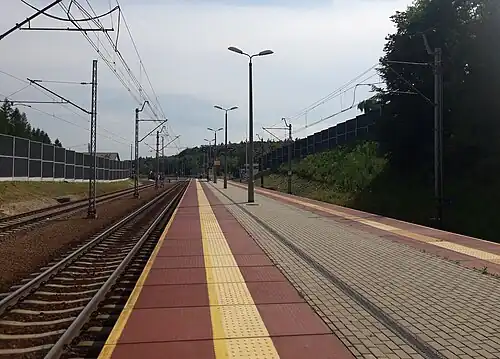 Tunel railway station is a railway station in the former village of Tunel, near Miechów, in the Lesser Poland Voivodeship, Poland. The station opened in 1885 and is located on the Warsaw–Kraków railway and Tunel–Sosnowiec railway. The train services are operated by Przewozy Regionalne and Koleje Małopolskie.