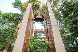 Built in 1966, the Priest Bell Tower is located in front of the entrance of the Luce Memorial Chapel in Tunghai University. In 2017, the Taichung City Cultural Assets Office registered it as a municipal monument. The Bell Tower is named in honor of Elsie Priest, who was invited to Taiwan by the United Board for Christian Higher Education in Asia (UBCHEA) in early 1955 to assist Tunghai University as the chief accounting officer and general secretary. Priest made many contributions to the university in its early years.[33]