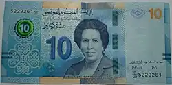 | | 10 dinars | Blue and Yellow | Aboul-Qacem Echebbi | Arches of Medesa Bacchia school in Tunis |