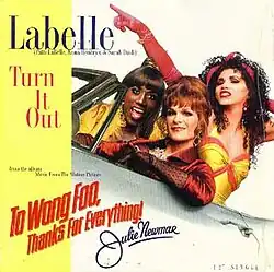 "Turn it Out" is a 1995 single by Labelle, their first new music as a band in nearly twenty years. The single was written by Shep Pettibone and Steve Feldman,[1] and was recorded for the 1995 movie To Wong Foo, Thanks for Everything! Julie Newmar. "Turn it Out" was produced by Pettibone and went to number one on the US dance charts, where it stayed for one week.[2]