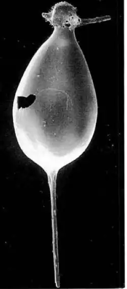 Tuscaridium is a genus of phaeodarian, (formerly thought to be radiolarians). They consume particles that sink quickly through water which would otherwise reach the deep ocean. Tuscaridiums make cellular colonies (they make a colony like a pyrosome ).[1][2][3] The genus contains bioluminescent species.[4][5] It one of two known bioluminescent phaeodarean genera, the other being Aulosphaera.