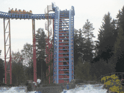 | Speed Monster | Accelerator | Intamin | 2006 | Route 66 | Speed Monster is an Intamin "Accelerator Coaster" with a 6000 HP hydraulic launch that rockets riders from zero to 90 km/h in 2.2 seconds. The rollercoaster then traverses a Norwegian loop around the escalator at the entrance of the park. It was the first Norwegian loop to ever exist on a roller coaster. Riders experience 4 G's, experience weightlessness 7 times, are inverted 3 times. The track is 700 meters long and lasts around 40s. It cost 70 million NOK to build. | |
