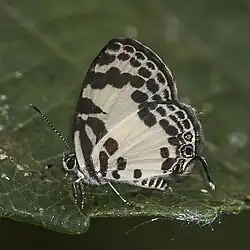 Tuxentius carana, the forest pied Pierrot, is a butterfly in the family Lycaenidae. It is found in Guinea, Sierra Leone, Liberia, Ivory Coast, Ghana, Togo, Nigeria, Cameroon, Gabon, the Republic of the Congo, Angola, the Central African Republic and the DRC.[2] The habitat consists of forests.