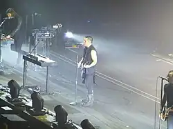 In 2012, Reznor confirmed that he was working on new Nine Inch Nails material and might be performing live again.[8][9][10] In February 2013, Reznor announced the return of Nine Inch Nails and revealed tour details. He also revealed that the new lineup of the band included Eric Avery of Jane's Addiction, Adrian Belew of King Crimson, and Joshua Eustis of Telefon Tel Aviv, as well as returning members Alessandro Cortini and Ilan Rubin.[11][12] However, both Avery and Belew quit before the tour commenced,[13][14] with former member Robin Finck returning in their place.[15][16]