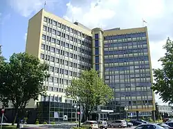 The "New City" was designated by the Polish government in 1950 and deliberately located near to Katowice with the intention that it would not be a self-sustaining city. It was granted town rights in 1951.[11] Tychy is the largest of the so-called "new towns" in Poland and was built from 1950 to 1985, to allow for urban expansion in the southeast of the Upper Silesian industrial region. In the 1950s the neighbourhood Osiedle A was built, designed by Tadeusz Teodorowicz-Todorowski, and the design and planning of the next neighbourhoods was entrusted to Kazimierz Wejchert and his wife Hanna Adamczewska-Wejchert.[11] In the 1950s, 1960s and 1970s numerous industrial enterprises were created.[11] In 1951 and 1973 the city limits were greatly expanded by including Paprocany and Wilkowyje (in 1951),[21] and Cielmice, Urbanowice, Jaroszowice (in 1973) as new districts.[11] By 2006, the population had reached 132,500.
