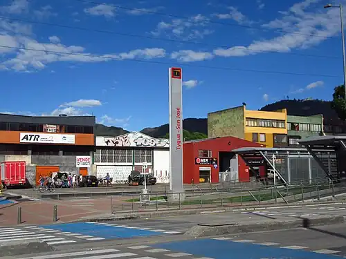 The simple station without exchange Tygua - San José, forms part of the TransMilenio mass transit system of Bogota inaugurated in the year 2000.