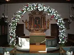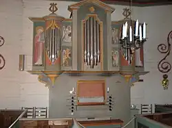 The small wooden chapel of St. Olof is situated on top of a stony hill among birches and pine-trees. Originally, the chapel was discovered by the antiquarian Erik Salvén in 1931, when he held a seminar on Greek art in Lidhult, a small community at the borders of the landscapes Halland and Småland. There he heard of a wooden church, with decorations and wooden details, built in 1721 and demolished in the late 19th century. The small church had been sold to a farmer in the village of Prosteköp and had been rebuilt into a residential house. As the farmer had been thinking of pulling down the old chapel because of its lack of amenities for the elderly couple that lived there, Salvén decided to move the church to Tylösand with the help of his good friend and priest Knut Peters. In 1950, the small chapel of St. Olof was erected.[4]