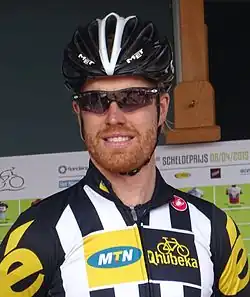 Tyler Farrar (born June 2, 1984) is an American former road racing cyclist,[2] who rode professionally between 2003 and 2017 for the Jelly Belly–Carlsbad Clothing Company, Health Net–Maxxis, Cofidis, Garmin–Sharp and Team Dimension Data squads.