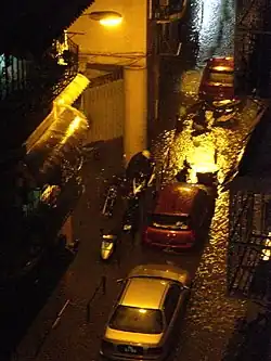 Vietnam began stockpiling food and medicine in preparation for the typhoon.[38] 550 tourist and fishing boats were recalled back to port in Hạ Long Bay, and rescue equipment was positioned in nine northern provinces.[39] The government said that "...there will be very heavy torrential rains, significantly raising the risk of flash floods and land slides in the nine mountainous provinces in the eye of the storm."[40] As of September 29, 2008, the flooding left behind by the typhoon left 41 people dead, and at least 60 injured.[41] Damages exceeded ₫1 trillion (US$72.49 million).[41] 1,300 houses were completely destroyed with about 10,000 more damaged.[42] Though the storm did not directly hit Vietnam,[43] heavy rains caused heavy flooding, especially in the provinces of Sơn La, Lạng Sơn, Bắc Giang and Quảng Ninh.[42] Hoang Thi Luu, a farmer from Tuan Dao, said, "The waters came really quick, coming down the mountains and from the rising rivers and streams. ... No one had enough time to save their property; they just ran for their lives."[43]