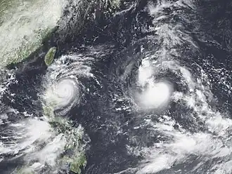 ![]() Saola at peak intensity while passing north the Philippines on August 30 | |
