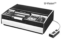 3⁄4-inch Type E Helical Scan or SMPTE E[1][2][3] is an analog recording videocassette format marketed by Sony Electronics Corporation, Matsushita Electric Industrial Co. (Panasonic) and Victor Co. of Japan (JVC). It was initially developed by Sony and shown as a prototype in October 1969, refined and standardized among the three manufacturers in March 1970, and introduced commercially in September 1971 by Sony.[4]