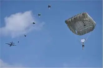 5. ^ [2] The Airborne School has US Army Black Hat cadre and additional instructors from the USN, USMC, and USAF to train students in the use of the static line deployed parachutes.