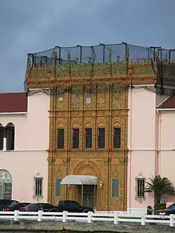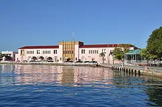The United States Custom House (Spanish: Edificio de la Aduana de Estados Unidos), also known as the San Juan Custom House (Edificio de la Aduana de San Juan), is a historic custom house located at the marina of Old San Juan in the city of San Juan, Puerto Rico.[1] The custom house is located at the site of the former main port of the city of San Juan, north of the former Spanish Arsenal of San Juan, and next to the Las Dársenas and Immigrants' Square (Plaza del Inmigrante) and the Jose V. Toledo Federal Building and United States Courthouse. The large two-storey custom house is considered by the NRHP to be a superb example of Spanish Colonial Revival architecture in Puerto Rico and the Caribbean. It is most notable for its size, its elaborate terracotta-ornamented central tower and its pink-colored exterior.[2]