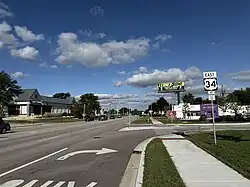 US 34 formerly overlapped US 66 all the way to its endpoint in downtown Chicago, but was truncated to its intersection with US 66 and IL 43 in Berwyn in 1970.[7] When US 66 was subsequently eliminated, the endpoint of US 34 was left at that location—the intersection of Ogden and Harlem Avenues in Berwyn. Due to the elimination of US 66, it is one of the few U.S. Highways that ends at a state highway.[8] With the re-signing of much of Historic US 66, the history of US 34's eastern endpoint is becoming much more clear.[9]