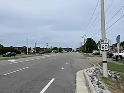 When it enters Hampton, 25th Street becomes Kecoughtan Road and Route 60 follows it to downtown. It runs through the Wythe and Southhampton neighborhoods, forming the northern boundary of the Olde Wythe Historic District. In the 1940s and 50s Kecoughtan Road was one of Hampton and Newport News's primary commercial centers.[3]