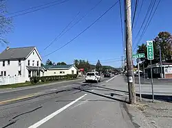 Past the I-99 interchange, US 6 heads into Mansfield and becomes West Wellsboro Street, heading through developed areas and crossing the Tioga River. The route continues into the downtown area, where it crosses US 15 Bus. and becomes West Wellsboro Street. US 6 becomes Sullivan Street and curves northeast and then southeast as it heads north of the Mansfield University of Pennsylvania campus. The route leaves Mansfield and becomes Roosevelt Highway, continuing southeast through wooded areas with some fields and reaching a junction with the southern terminus of PA 549. The road heads east through a mix of farmland and woodland with occasional development, passing through the community of Mainesburg.[1][7]