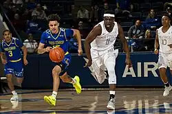 A game between the Highlanders and Air Force Falcons men's basketball teams in 2018