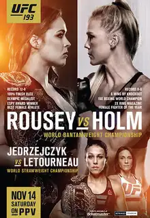 23. ^ "UFC 193: Rousey vs. Holm". Ultimate Fighting Championship. Retrieved 29 August 2015.