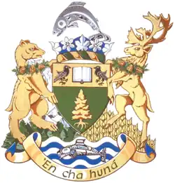 The UNBC motto, 'En cha huná, directly translates as "that person also lives" in the Nak'azdli (Fort St. James) dialect of the Indigenous language Dakelh (Carrier). It is interpreted in English as "respecting all forms of life".[21]