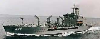 Guadalupe, the fourteenth ship of the Henry J. Kaiser class, was laid down at Avondale Shipyard, Inc., at New Orleans, Louisiana, on 9 July 1990 and launched on 5 October 1991. She entered non-commissioned U.S. Navy service under the control of the Military Sealift Command with a primarily civilian crew on 25 September 1992. She serves in the United States Pacific Fleet. In June 2004, USNS Guadalupe rescued 13 crew and a dog from the burning Taiwanese fishing vessel Hsin Chin Chanz, around 900 miles north east of Guam in the Pacific.[1]