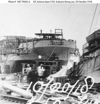 ![]() Fitting out Auburn in Chester, Pennsylvania, 20 October 1918. | |