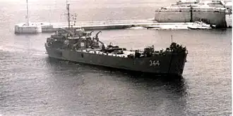 ![]() USS Blanco County (LST-344) entering the Grand Harbour at Malta, c. 1957 | |