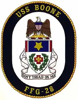 USS Boone (FFG-28) was the twentieth ship in the United States Navy's Oliver Hazard Perry-class of guided missile frigates.