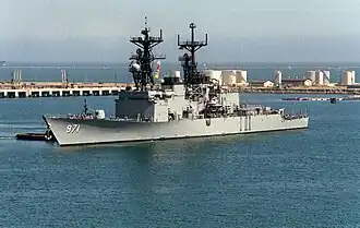 David R. Ray's second major overhaul began in June 1988, which coincided with the ship's shift of homeport from San Diego to Long Beach, California. During this overhaul, the ship received a Vertical Launch System. After the overhaul, the ship completed four CNO projects, including RAM, NATO Seasparrow RIM-7P, BGM-109 Tomahawk Block 2 and ASROC. David R. Ray deployed on 27 April 1990 and was in the Persian Gulf at the onset of Iraq's invasion of Kuwait. The ship played a critical role in the early stages of Operation Desert Shield before returning to the United States. Deploying again to the Middle East Force on 22 April 1992, the ship served as flagship during Maritime Interception Force Operations before returning to Long Beach, California, on 22 October 1992.