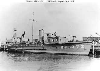 ![]() USS Drusilla (SP-372) in port ca. 1918. | |