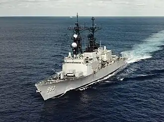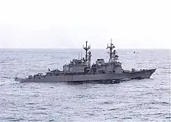 | Propulsion | 4 × General Electric LM2500 gas turbines, 2 shafts, 80,000 shp (60 MW) |