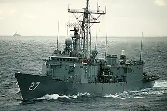 ![]() USS Mahlon S. Tisdale (FFG-27) underway during PACEX '89 | |