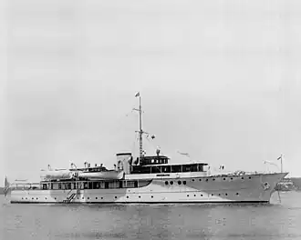 USS Moonstone (PYc-9) was a coastal patrol yacht in the service of the United States Navy. She was built in 1929 as Nancy Baker by Germaniawerft in Kiel, Germany, later renamed Mona, and subsequently acquired by the Navy as the Lone Star on 10 February 1941. Renamed Moonstone and designated PYc-9, she was converted for U.S. Navy service in Jacksonville, Florida, and commissioned on 10 April 1941. She was named for the gemstone moonstone.