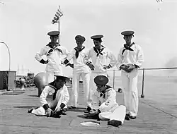 In the fighting, Nahant had been hit 36 times, disabling her turret and breaking off a large piece of iron inside her pilot house, killing her helmsman and wounding her pilot and two others. The whole fleet took 13 casualties.[1] The next day, with her sister monitors, she retired to Port Royal for repairs.