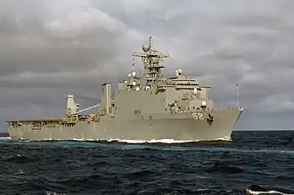 ![]() USS Pearl Harbor (LSD 52) in the Pacific Ocean (20 June 2007). | |
