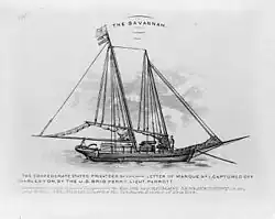 ![]() Brig USS Perry (left) confronting American slave ship Martha off Ambriz, June 6, 1850. | |