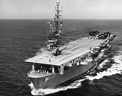 In 1941, as United States participation in World War II became increasingly likely, the US Navy embarked on a construction program for escort carriers, which were converted from transport ships of various types. Many of the escort carrier types were converted from C3-type transports, but the Sangamon-class escort carriers were instead rebuilt oil tankers. These proved to be very successful ships, and the Commencement Bay class, authorized for Fiscal Year 1944, were an improved version of the Sangamon design. The new ships were faster, had improved aviation facilities, and had better internal compartmentation.[1] They proved to be the most successful of the escort carriers, and the only class to be retained in active service after the war, since they were large enough to operate newer aircraft.[2][3]