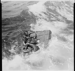 On 12 April Queenfish rescued the 13-man crew of a U.S. Navy PB4Y-2 aircraft of VPB-108 which ditched on 8 April after becoming lost.[7] Queenfish spent her fifth patrol under Cdr. Frank N. Shamer on lifeguard duty in the East China Sea-Yellow Sea area. She was at Midway preparing for another patrol when the war ended.