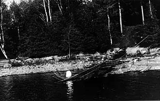 On 11 October the Americans established a battery on the river bank opposite the fort and Royal Savage. Fire from a 13" mortar in the battery sank her on 14 October.[7][6]