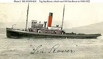 - ^ The Dictionary of American Naval Fighting Ships at http://www.history.navy.mil/danfs/s8/sea_rover.htm states that the reclassification occurred on 1 July 1920 and NavSource Online: Service Ship Photo Archive SP-1014/AT 57 Sea Rover repeats this assertion, but the U.S. Navy did not put its modern hull number system into effect until 17 July 1920, so 17 July 1920 is the more likely date and the "1 July 1920" date may simply be a typographical error in the original hard-copy publication of the Dictionary of American Naval Fighting Ships.