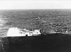 - ^ Graff, Cory, "Clear The Deck!: Aircraft Carrier Accidents of World War II", Specialty Press, North Branch, Minnesota, 2008, Library of Congress card number 2008001955, ISBN 978-1-58007-224-3, page 54.