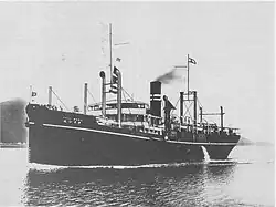 On the day after Christmas 1943, Swordfish departed for her tenth war patrol, in the hands of one of the Submarine Force's oldest commanders, 42-year-old Karl G. Hensel (Class of 1923), formerly commanding Submarine Division 101.[13] The patrol was conducted in Tokyo Bay. It was plagued with equipment casualties in old Swordfish, including radar trouble and electrical fires.[14] On 13 January 1944, she sank 6921-ton freighter Yamakuni Maru, while surviving "heavy—and close—depth charges".[14] The depth charging caused her to lose power in her electrical systems, and when she dived at dawn the next day, she suffered two separate fires and nearly went right to the bottom; her captain managed to bring her back up, where she wallowed on the surface, only to have a Japanese patrol boat close on her.[14] She regained power in the nick of time and dived.[14] At around 2200 on 14 January, Swordfish detected another ship, and made radar contact at 7 nmi (8.1 mi; 13 km) on the Japanese navy's first genuine Q-ship,[14] the 2182-ton merchantman Delhi Maru, on her maiden voyage.[14] She had been outfitted with sonar (which Swordfish had heard pinging), new watertight bulkheads, depth charge throwers, and concealed guns, specially to destroy submarines. At midnight, Swordfish fired three bow torpedo tubes, scoring three hits[14] with the recently corrected Mark XIV torpedo.[14] Delhi Maru blew up, and the two patrol boats of her escort kept Swordfish down with depth charges for three hours before she evaded.[15]