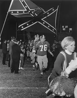 The school's colors are blue and white with orange becoming more prominent. The school mascot is a horse named Blaze.[29] UTA's former fight song, "Dixie", coincided with the school's Rebel mascot. After the mascot became more and more controversial, the fight song was changed and the current edition, the "UTA Fight Song", was established.[30]