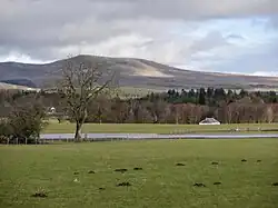 Uamh Mhòr (older spelling Uaighmor, also anglicised Uam Var[1]) is a summit located in the Kilmadock parish in Stirling council area, Scotland, situated north of the River Teith between Callander and Doune.[1] The name means "great cave",[1] referring to a large cave in the cliff face which was a hideout for brigands into the eighteenth century.[2] The peak is actually a southern top of Uamh Bheag to the north;[3][4] despite the name suggesting a smaller hill, Uamh Bheag is actually higher at 664 metres (2,178 ft) compared to just over 600 metres (2,000 ft).[4]
