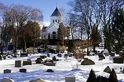 The church yard contains a cemetery (Ullern kirkegård) which is the final resting place to a number of notable Norwegian citizens including Håkon Christie, Chrix Dahl, Thorbjørn Egner, Carl Otto Løvenskiold and Nic Schiøll.[6][7]
